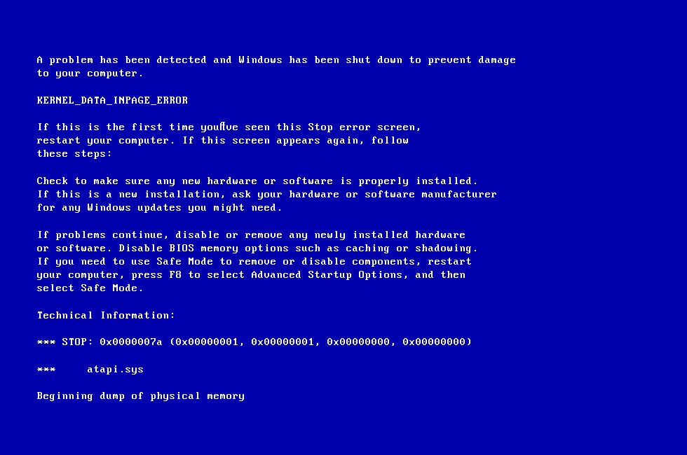 - KERNEL DATA INPAGE ERROR (0X0000007A)